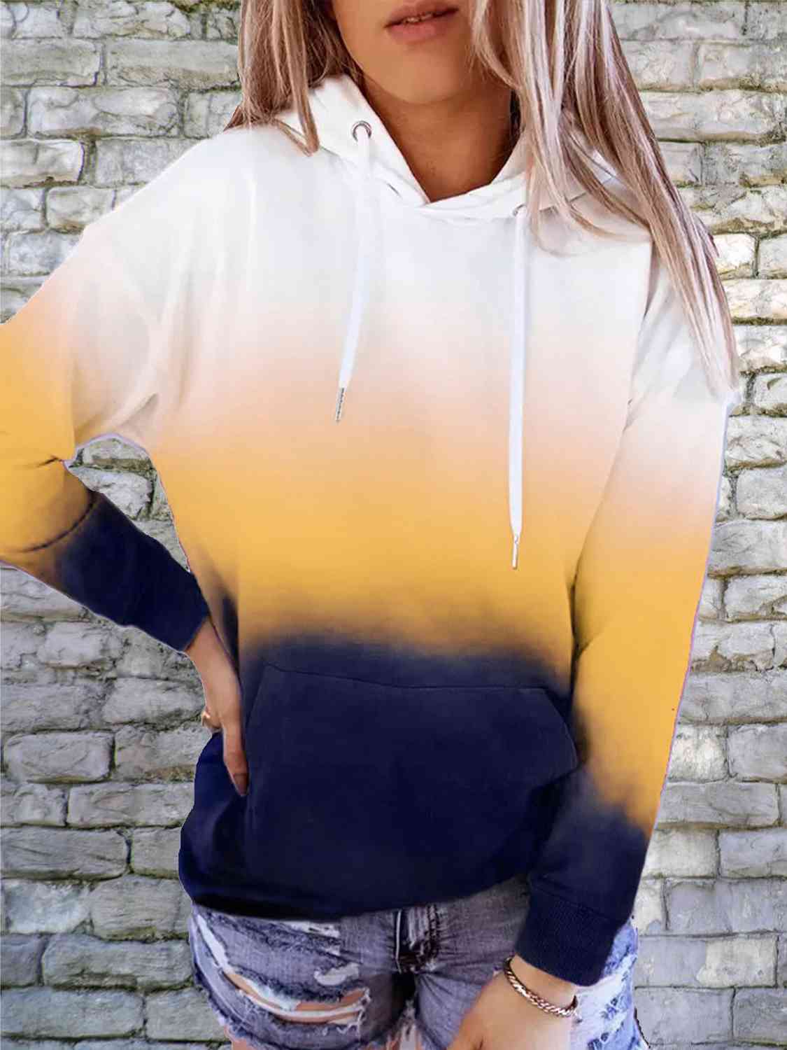 Elevate your fashion game with our Gradient Drawstring Long Sleeve Hoodie, a must-have addition to your wardrobe. This stylish and comfortable hoodie is designed to keep you cozy and on-trend, no matter the occasion.