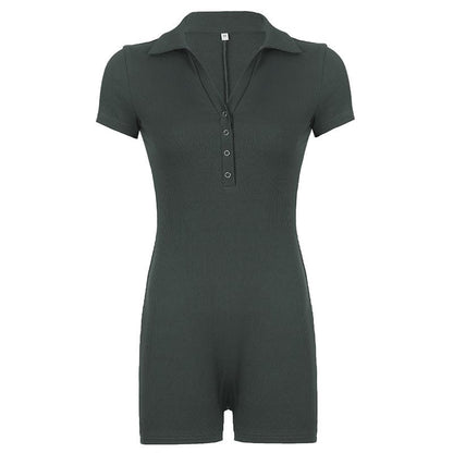 This women's jumpsuit features a lapel-breasted rib design, making it a stylish yet comfortable option for casual wear. With its skinny fit, it flatters the body while providing ease of movement. Perfect for any occasion, this jumpsuit is a must-have for every woman's wardrobe.