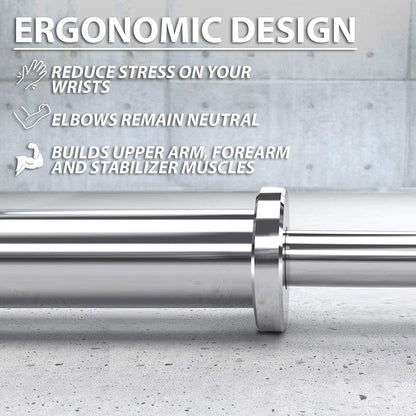 Versatile: A nice lifting bar for arm exercises such as curls, biceps/tricep extensions, wrist curls, etc and practice overhead, wide grip, movements, like the snatch